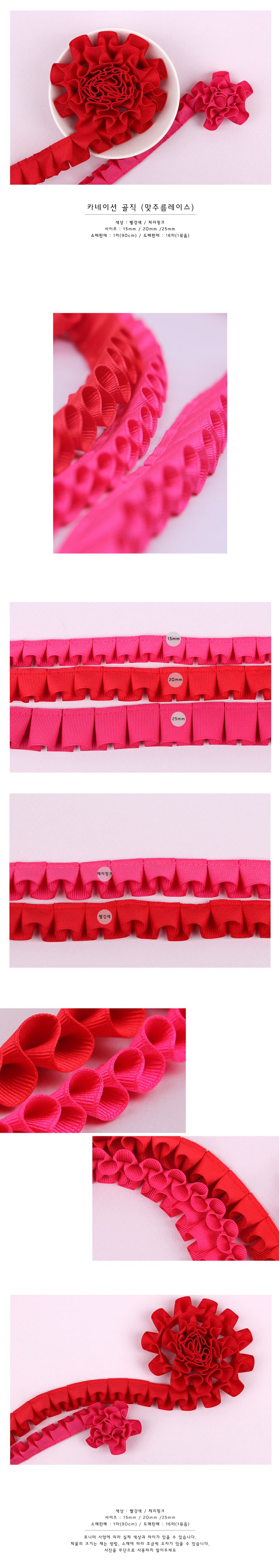 체리핑크/카네이션골직(맞주름레이스) > 리본주름레이스