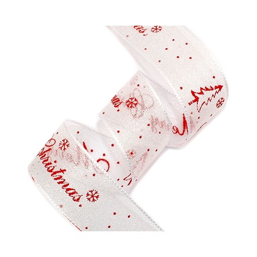 오간디에 크리스마스 로고가있는 고급스런 리본입니다.