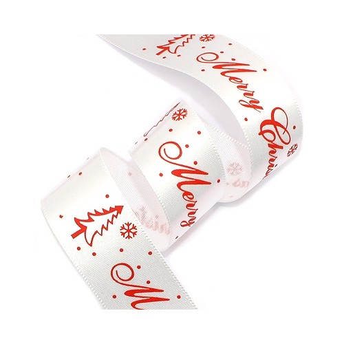 흰색공단에 크리스마스 로고가있는 고급스런 리본입니다.