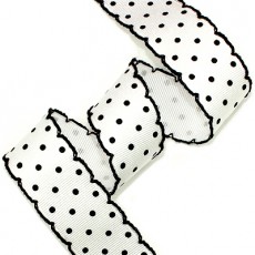 베이지/밤색 땡땡이 골지에 밤색실 피코트 리본입니다.