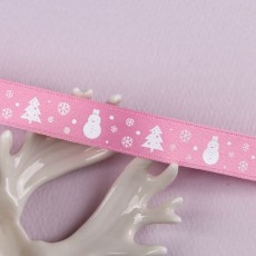 연핑크 공단/금박 별츄리 > 크리스마스리본