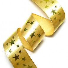 카키색 공단에 금박 별무늬 프린트 리본입니다.