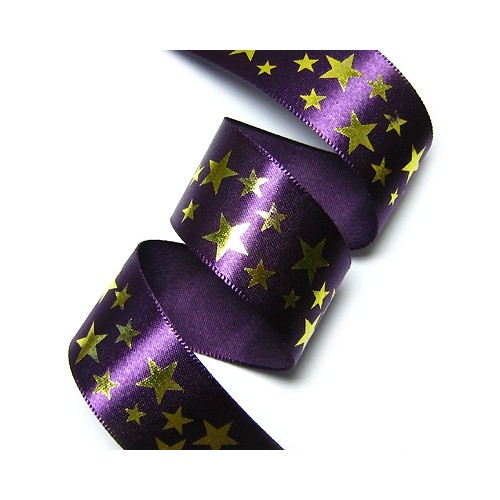 포도주색 공단에 금박 별무늬 프린트 리본입니다.