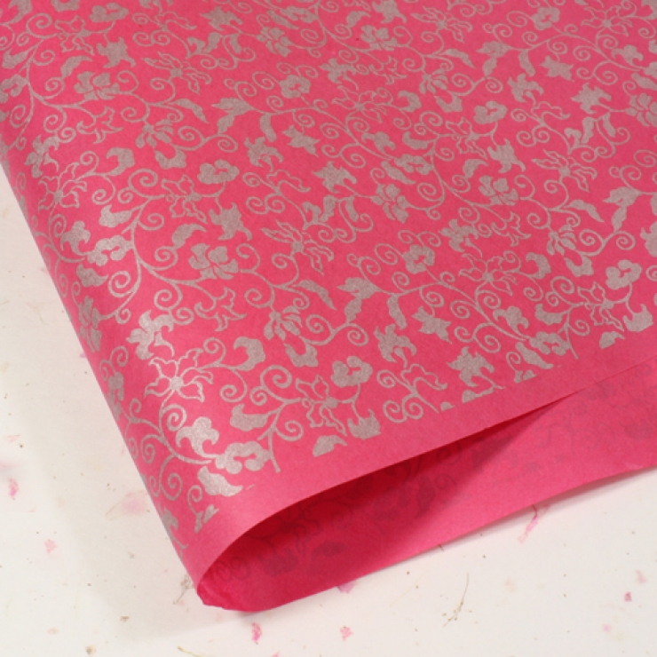 진달래색/당초무늬(전통문양한지) > 한지