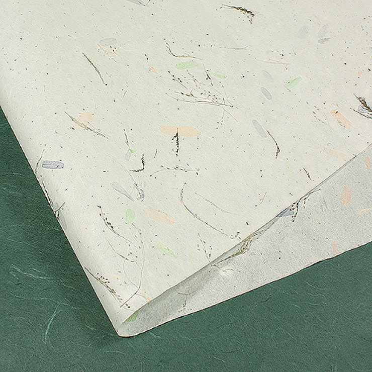 나뭇잎을 얹어 만든 한지입니다.