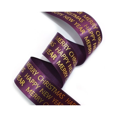 포도주 공단리본에 금박 영문 크리스마스 리본입니다.