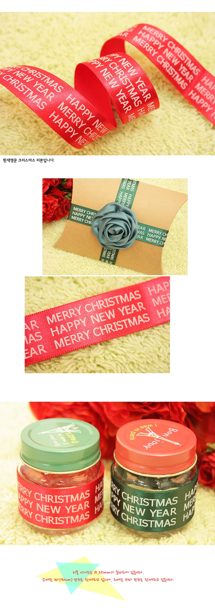 빨강색공단/흰색영문 고딕체(크리스마스리본) 요약정보 및 구매