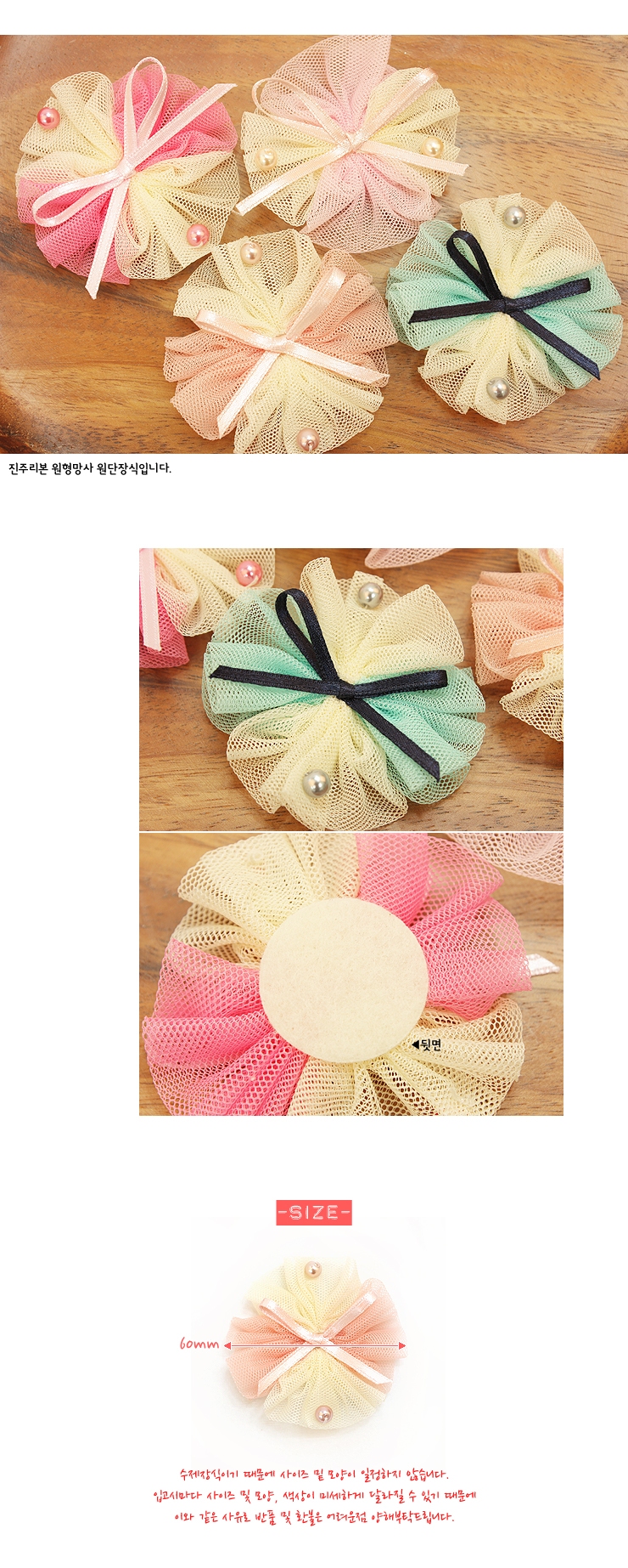 핑크/진주리본 원형망사(원단장식) > 원단/쉬폰/코사지장식