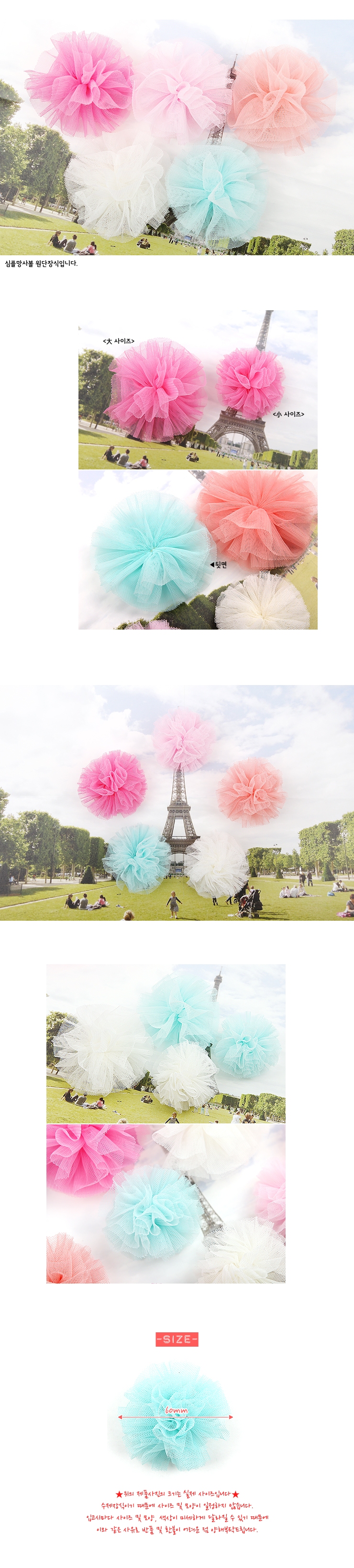 체리핑크/(小)심플망사볼(원단장식) > 원단/쉬폰/코사지장식