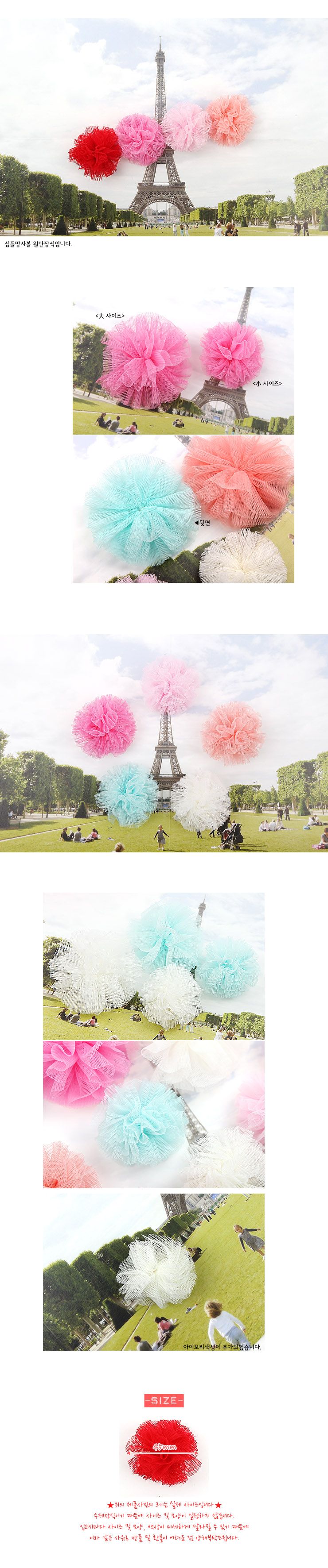 빨강/미니 심플망사볼(원단장식) > 원단/쉬폰/코사지장식